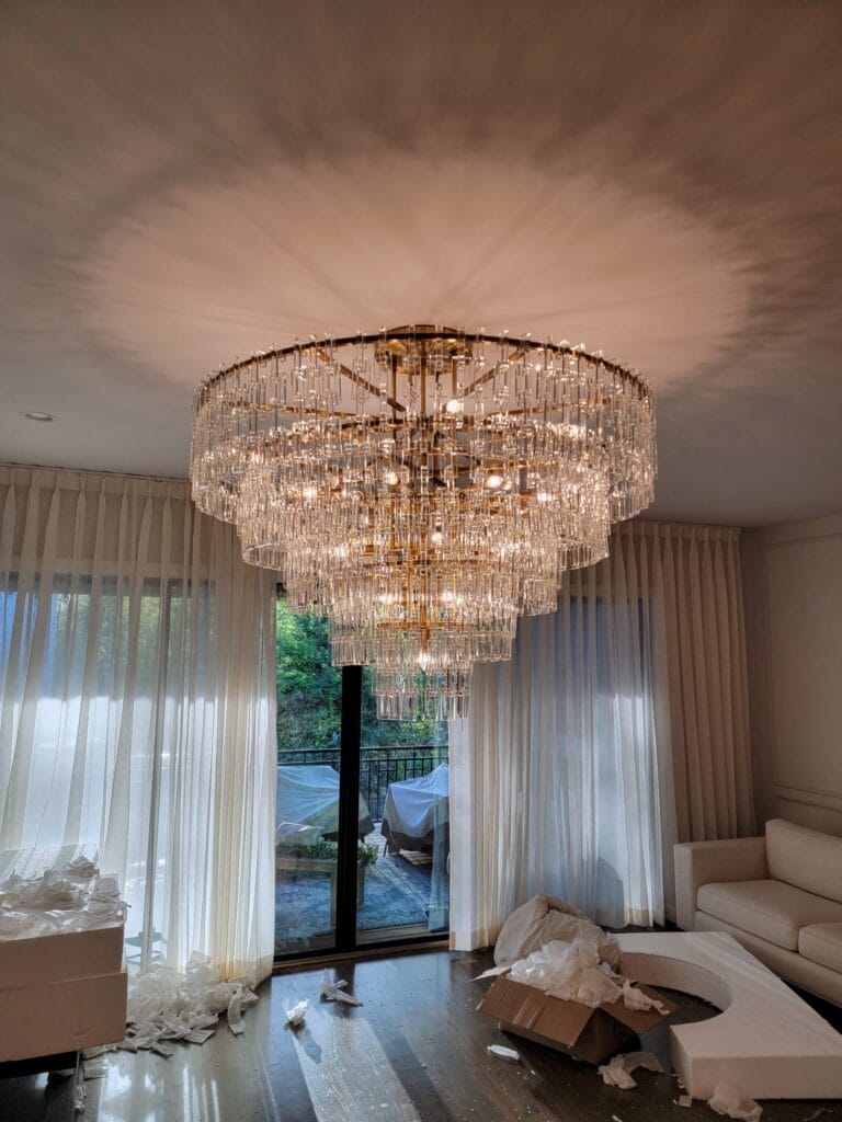 High-end chandeliers with leaded crystal ( instead of glass) by name brands such as Swarovski, Steuben, Waterford, Schonbeck, and others are expensive because of the lead in the crystal, which impart a lot more color and sparkle when illuminated – Dust and grime from a dirty and unclean chandelier will mask this beauty very quickly.